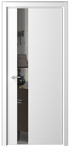 Дверь STATUS G ширина 80 см Белый Эмаль Зеркало грей с замком кромка Хром в Челябинске