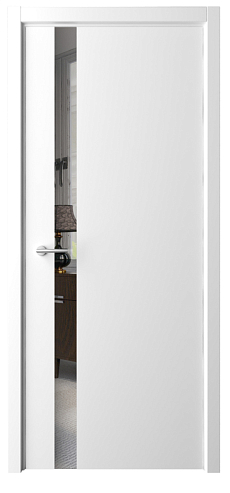 Дверь Геометрия-5 ширина 80 см Белый Эмаль Зеркало грей с замком кромка В цвет полотна в Челябинске