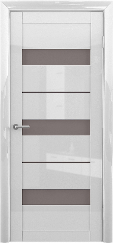 Дверь Прага ширина 80 см Белый глянец Глянец Стекло мателюкс бронза с замком в Челябинске